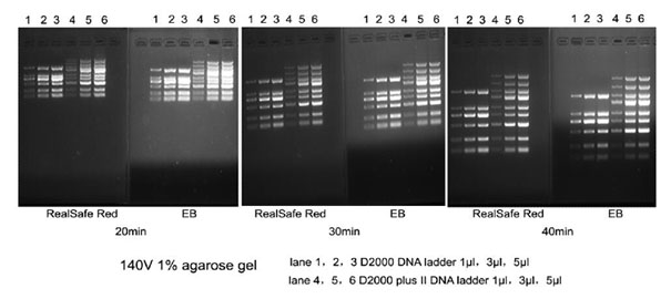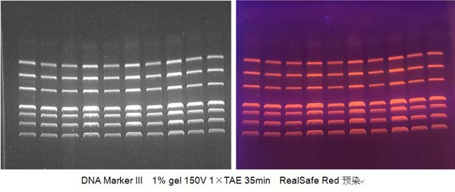 3. 染料在膠中遷移度低,電泳後紫外觀察不會出現陰陽膠現象。