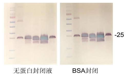 注意:使用本産品,PVDF膜和NC膜使用推薦封閉時間,經多種抗體(tǐ)的測試封閉效果顯著優于常規的BSA封閉1 h。對于一些背景非常高的抗體(tǐ),可(kě)以嘗試延長封閉時間。如(rú)有特殊需要,也可(kě)4℃封閉過夜。