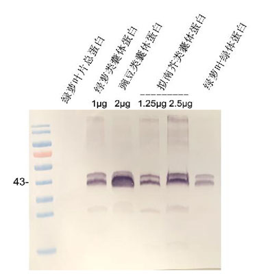 檢測到兩個條帶,大(dà)小43和45kD