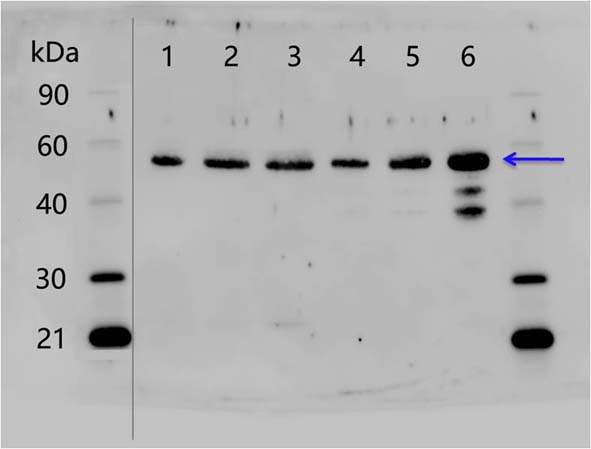 Expected/apparent MW: 53 / 53-55 kDa