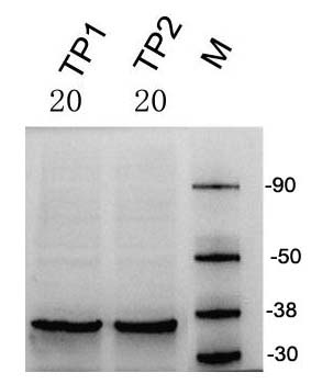 一抗孵育:GAPDH 羊抗兔多抗,一抗稀釋液稀釋1:2000