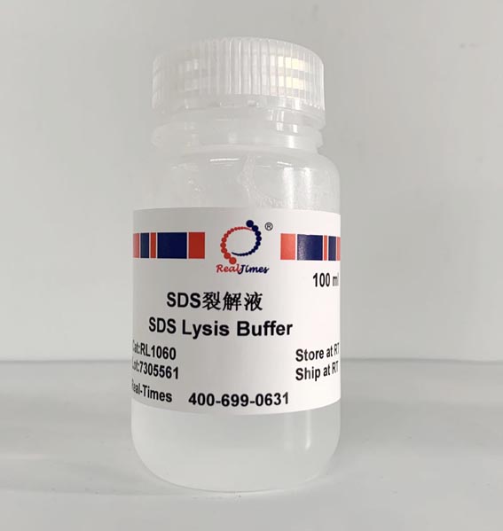 SDS裂解液(SDS Lysis Buffer)是一種比較強烈的細胞組織裂解液,其主要成分(fēn)是Tris (pH8.0), SDS,EDTA等。SDS裂解液裂解得(de)到的蛋白(bái)樣品可(kě)以用于常規的Western、ChIP(染色質免疫共沉澱,chromatin immunoprecipitation)等。由于SDS裂解液有較強的裂解能力,IP或Co-IP實驗不建議(yì)使用該裂解液。由于含有較高濃度的SDS等幹擾物質,不能用傳統Bradford法測定由本裂解液裂解得(de)到樣品的蛋白(bái)濃度,可(kě)以使用BCA蛋白(bái)濃度測定試劑盒(貨号:RTP7102)或Bradford蛋白(bái)濃度測定試劑盒(去(qù)垢劑兼容型)(貨号:RTP7104)測定蛋白(bái)濃度。
