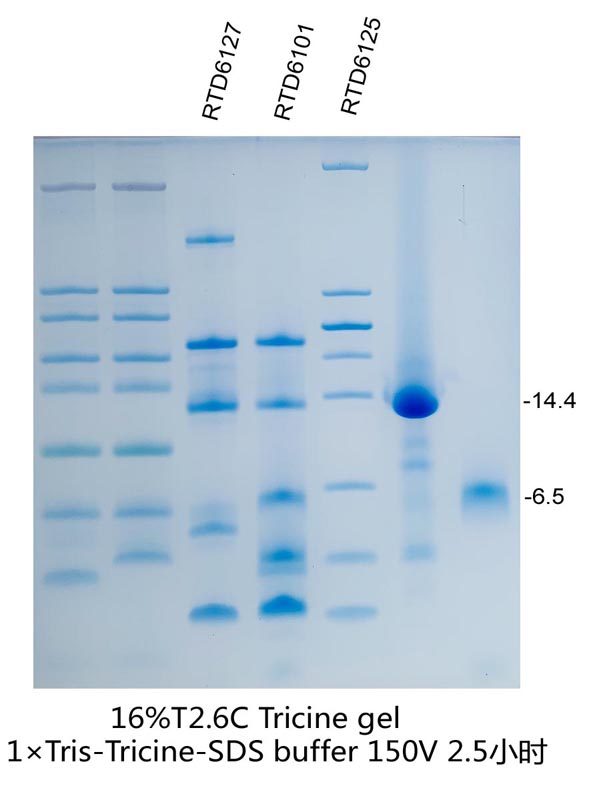 Marker: RTD6110,彩虹超低分(fēn)子量蛋白(bái)Marker(1.2-45 kD)