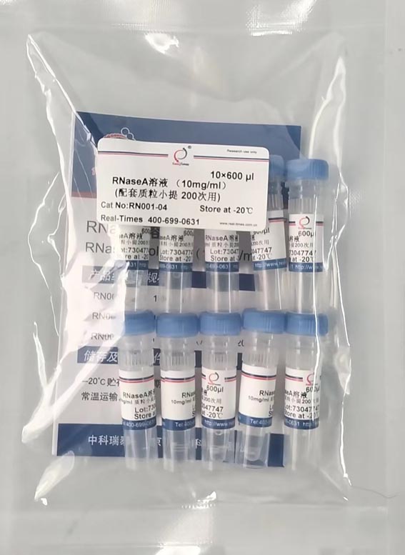 RNaseA在質粒中的終濃度推薦爲100μg/ml,即在質粒溶液中按照(zhào)1/100體(tǐ)積加入10mg/ml RNaseA即可(kě),如(rú)50μl質粒中加入0.5μl RNaseA溶液,37℃孵育10分(fēn)鍾。