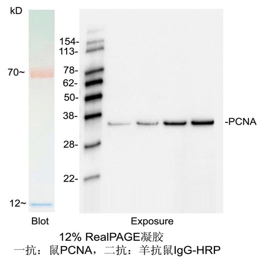 注a:對于使用一抗爲鼠源抗體(tǐ)建議(yì)取本産品5 μl進行蛋白(bái)電泳;對于使用一抗爲兔源抗體(tǐ)可(kě)以降低上樣量至3 μl;建議(yì)初次使用本産品時可(kě)以根據自(zì)身(shēn)的實驗條件(jiàn)和實驗習慣通過預實驗确定合适的上樣量,以獲得(de)效果更佳的實驗圖片;