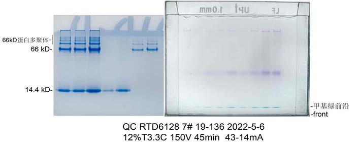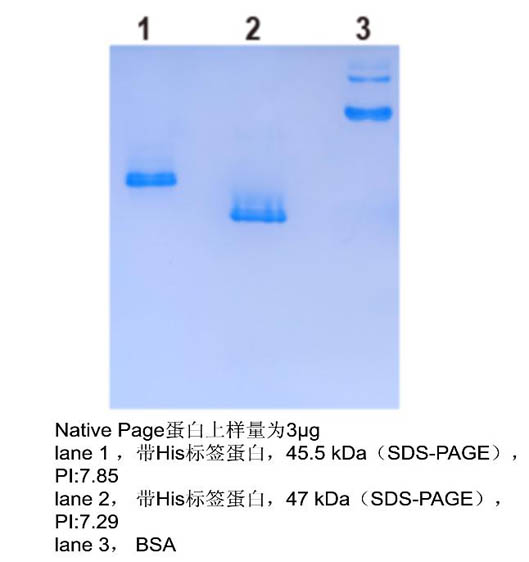 1. 由于本系統采用非連續凝膠系統,分(fēn)離(lí)膠pH爲4.3,因此要求待分(fēn)離(lí)的蛋白(bái)等電點pI>7.0,這樣堿性蛋白(bái)在酸性凝膠系統内帶正電荷,在凝膠電泳中才能正常向陰極泳動。如(rú)果待分(fēn)離(lí)的蛋白(bái)等電點pI<7.0,請(qǐng)選擇非連續Laemmli活性凝膠系統分(fēn)離(lí)(貨号:RTD6130)。