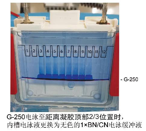 陽極緩沖液和陰極緩沖液均直接使用1×BN/CN PAGE電泳緩沖液進行電泳。