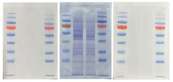 1.1 電泳結束後,将膜用超純水震蕩漂洗3次,每次2分(fēn)鍾,徹底去(qù)除膜表面的任何殘餘物質,這些物質可(kě)能會影(yǐng)響染料和蛋白(bái)的結合。