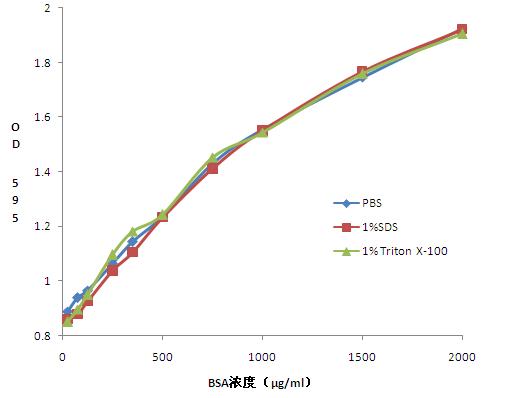 mM。同時,此方法測定蛋白(bái)濃度可(kě)以兼容受高濃度的去(qù)垢劑影(yǐng)響,可(kě)以适用于膜蛋白(bái)樣品的濃度測定。蛋白(bái)樣品中SDS濃度低于1%,Triton