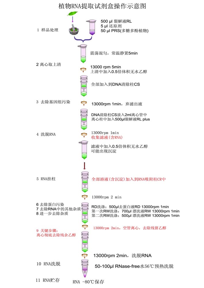 建議(yì):對于多酚多糖的植物樣本,務必使用緩沖液PRS,這是我們專門(mén)針對多酚多糖植物樣本而研制的多糖多酚去(qù)除劑,如(rú)不添加,将導緻RNA不能挂柱或提取到純度不高的RNA。