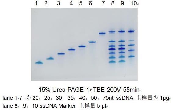 注:1. 染色時間不要太長,更不能過夜染色。長時間染色會導緻ssDNA遊離(lí)出凝膠,導緻膠上無帶。