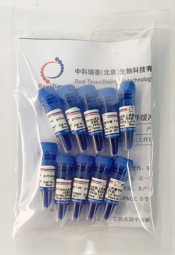 2×Tricine多肽上樣緩沖液(非變性,非還(hái)原)(Non-Reducing and non-denaturing Tricine Sample Loading Buffer,2×),是一種經過改良的以考馬斯亮藍G-250爲指示前沿,2倍濃縮的多肽電泳上樣緩沖液。本産品不含SDS變性試劑,不含DTT、巯基乙醇等還(hái)原性試劑,應用于Tricine