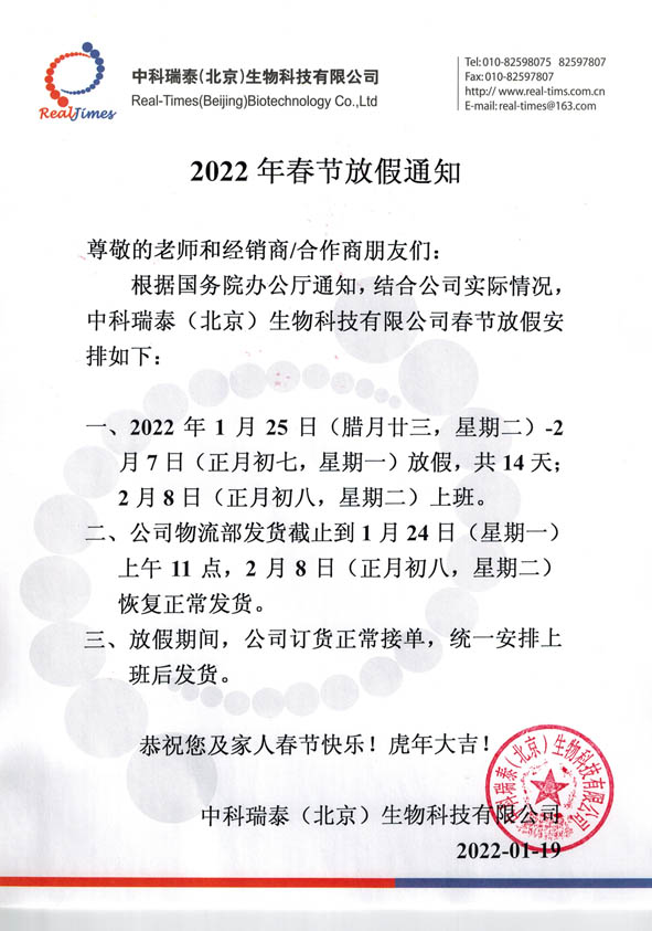 2022年(nián)春節放(fàng)假通知