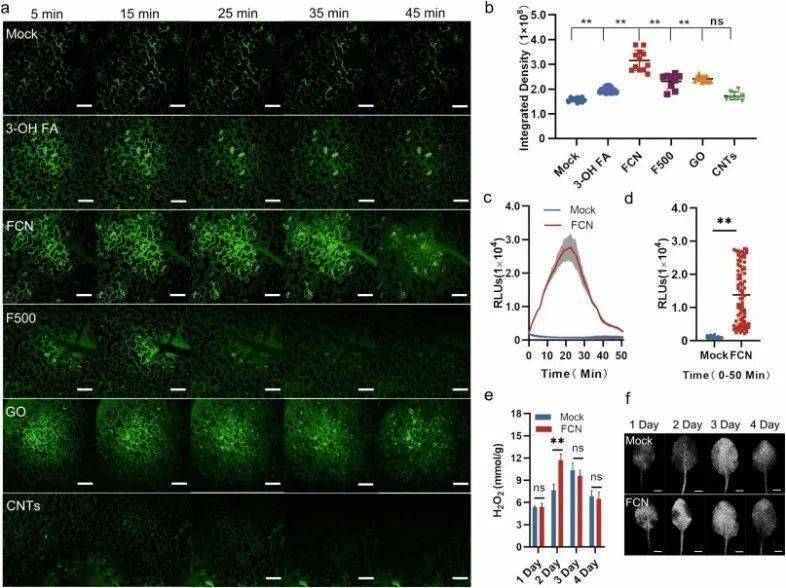 圖1 . FCN觸發的 ROS爆發與納米尺度的sp2碳核表面修飾的羧基相(xiàng)關