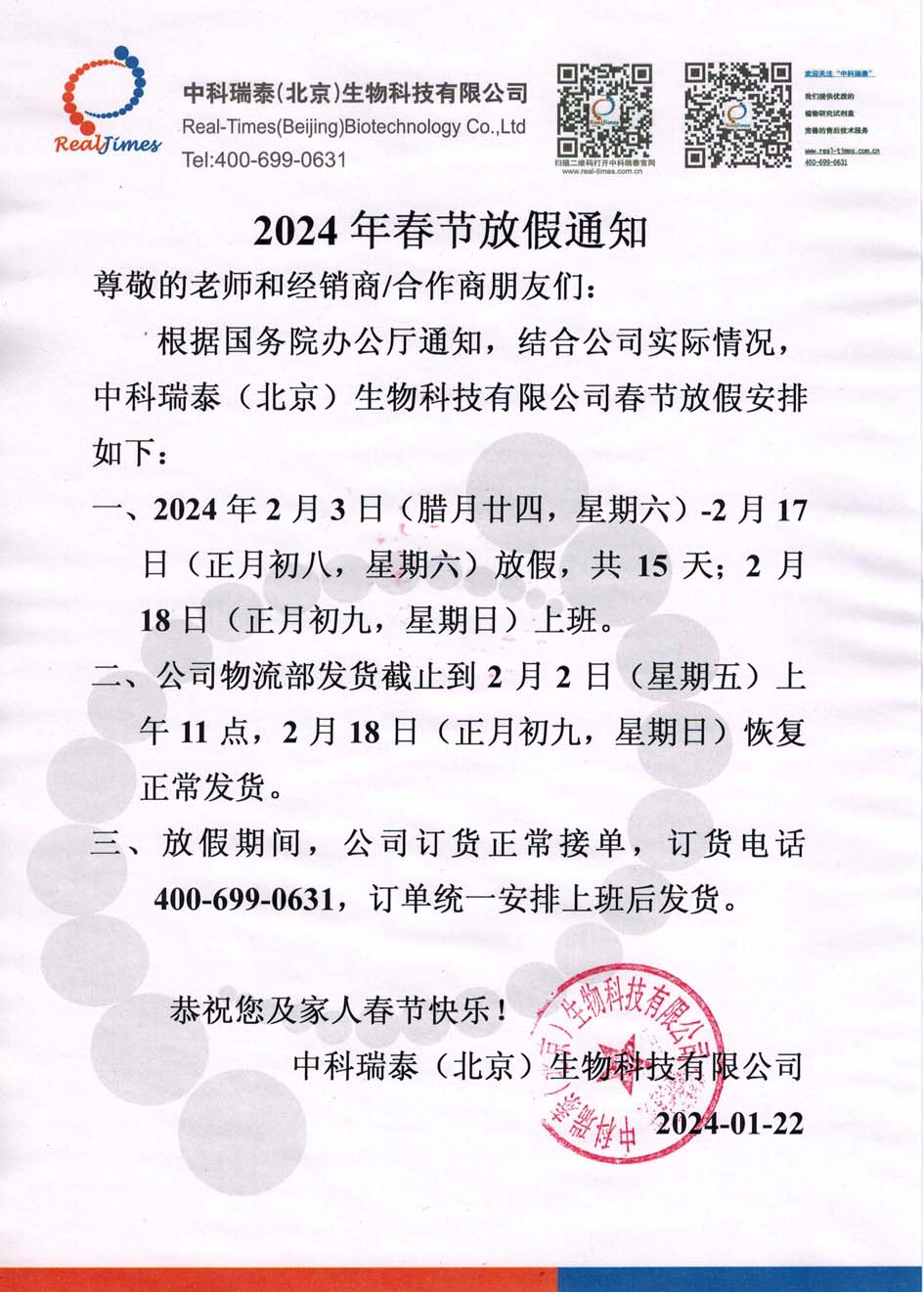2024年(nián)春節放(fàng)假通知