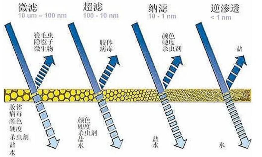 微濾 (Microfiltration) 涉及利用微孔膜介質去(qù)除溶液中尺寸爲 0.1 μm 至 10.0 μm 的顆粒或生(shēng)物體(tǐ)。而超濾膜的過濾範圍爲0.01μm至0.1μm。