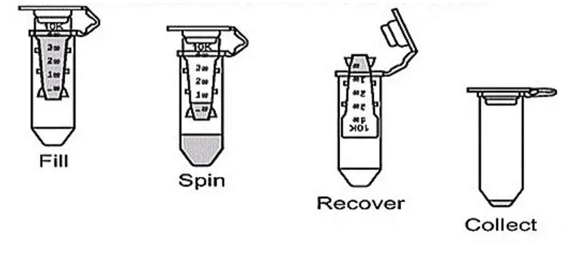 收集濾出液後,濃縮樣本(截留部分(fēn))可(kě)通過一個簡便的倒置(上下反轉)離(lí)心步驟而實現高效回收。反轉離(lí)心回收設計(jì)使蛋白(bái)樣品,特别是小體(tǐ)積樣品得(de)到高效回收,避免槍頭吸取造成的樣品丢失或操作(zuò)錯誤。
