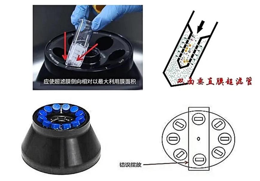 超濾管在離(lí)心機(jī)中的擺放(fàng)需要符合切向流過濾要求,即水流方向與膜面平行。
